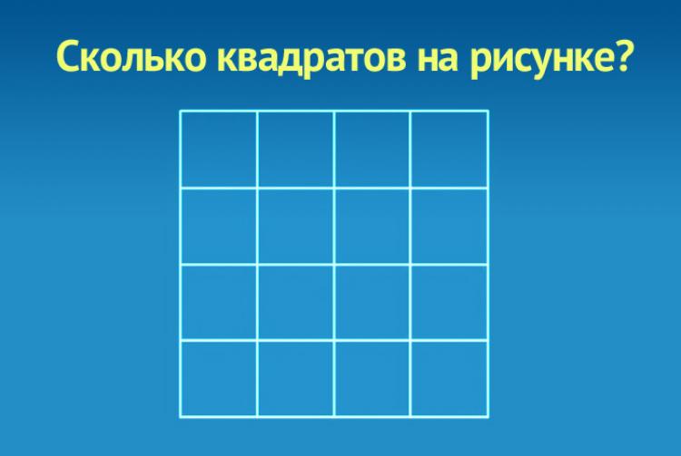 Перед вами еще одна задачка, в которой нужно посчитать квадраты на рисунке.